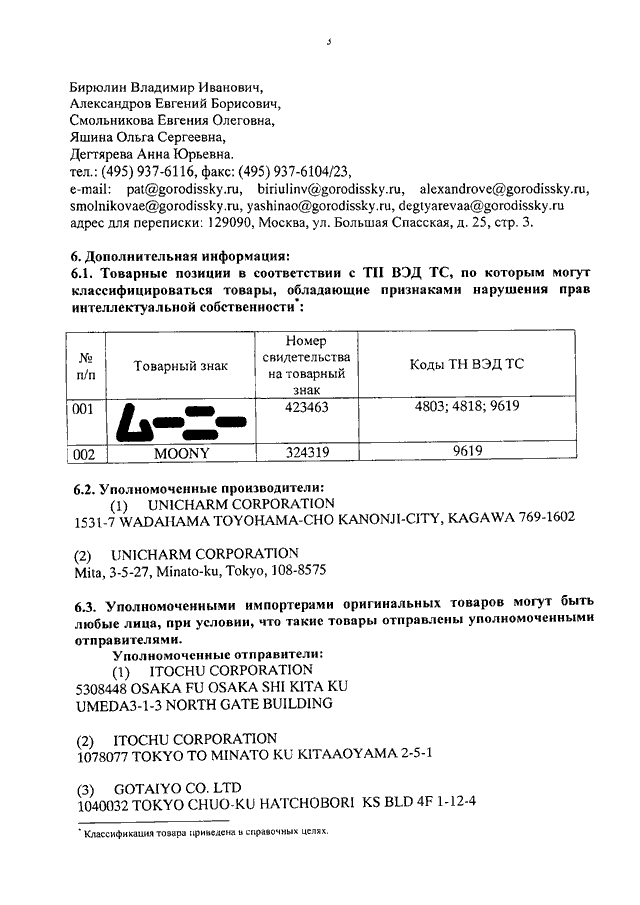 "О ТОВАРНЫХ ЗНАКАХ КОМПАНИИ "ЮНИ-ЧАРМ КОРПОРЕЙШН"
