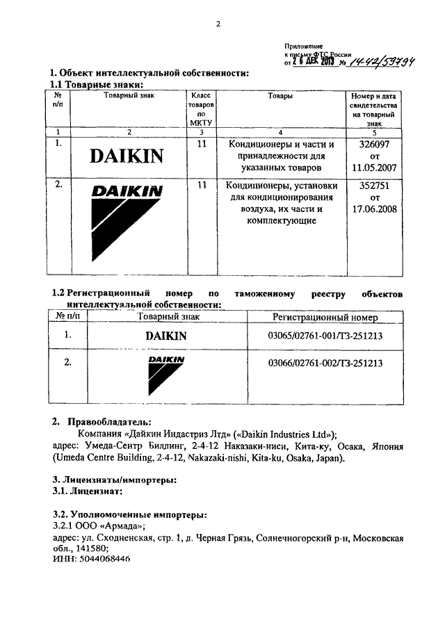 "О ТОВАРНЫХ ЗНАКАХ КОМПАНИИ "DAIKIN INDUSTRIES LTD"