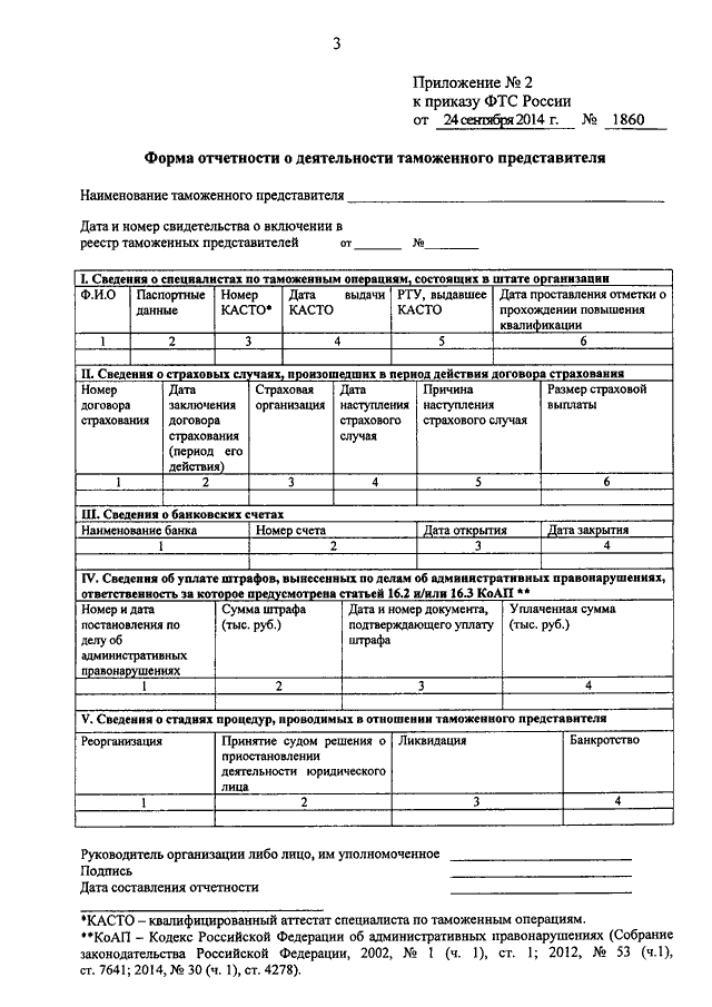 ПРИКАЗ ФТС РФ от 24.09.2014 N 1860
