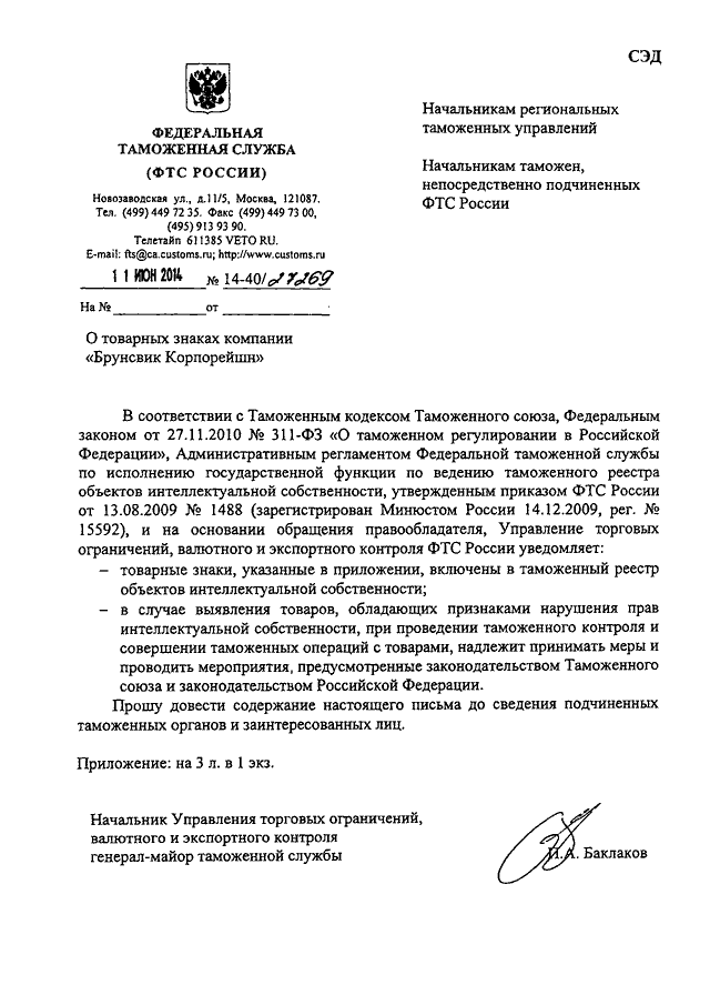 ПИСЬМО ФТС РФ от 11.06.2014 N 14-40/27269