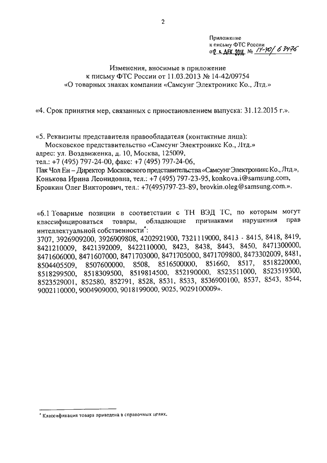 "О ВНЕСЕНИИ ИЗМЕНЕНИЙ В ПИСЬМО ФТС РОССИИ ОТ 11.03.2013 N 14-42/09754"