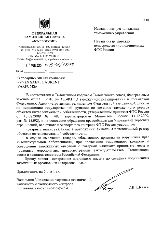 ПИСЬМО ФТС РФ от 17.02.2015 N 14-40/07177