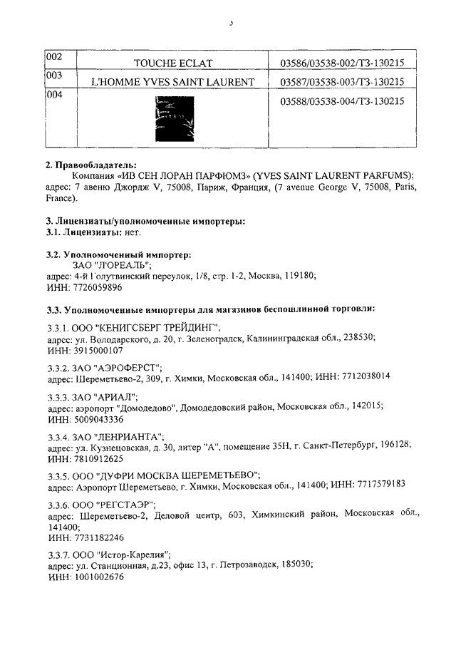 "О ТОВАРНЫХ ЗНАКАХ КОМПАНИИ "YVES SAINT LAURENT PARFUMS"