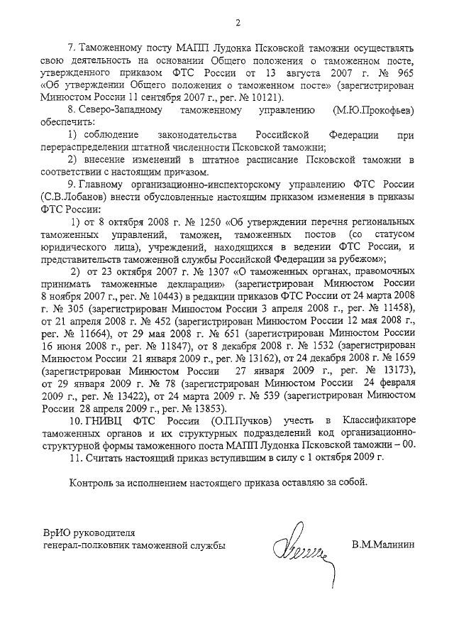 "О СОЗДАНИИ ТАМОЖЕННОГО ПОСТА МАПП ЛУДОНКА ПСКОВСКОЙ ТАМОЖНИ И ВНЕСЕНИИ ИЗМЕНЕНИЙ В ПРИКАЗ ФТС РОССИИ ОТ 30 ИЮЛЯ 2008 Г. N 927"