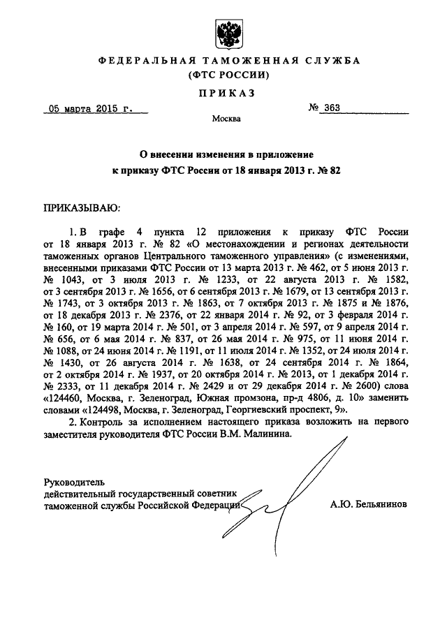 ПРИКАЗ ФТС РФ от 05.03.2015 N 363