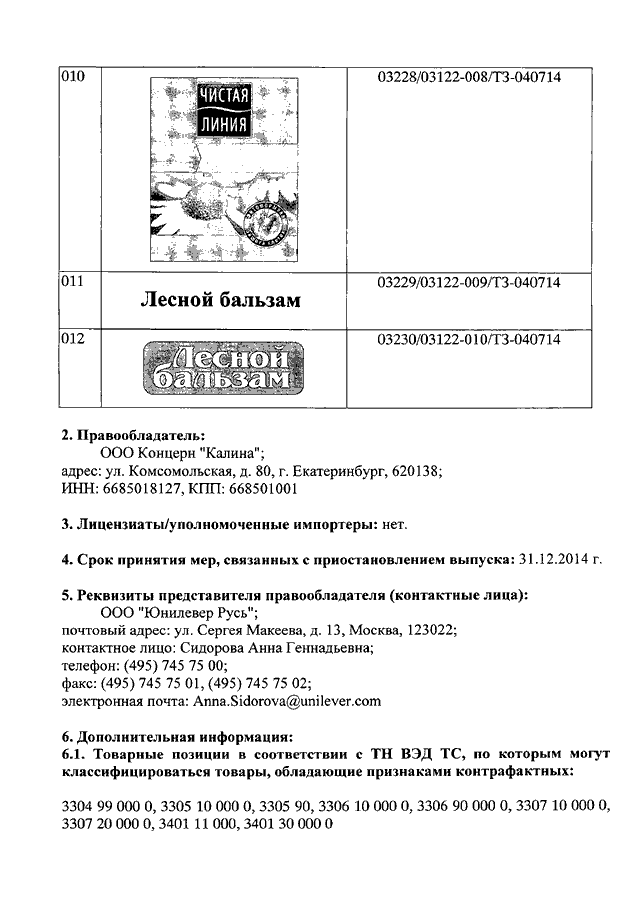 "О ТОВАРНЫХ ЗНАКАХ ООО КОНЦЕРН "КАЛИНА"
