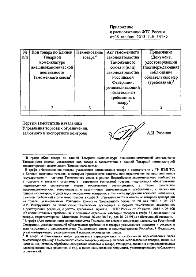 РАСПОРЯЖЕНИЕ ФТС РФ от 06.11.2013 N 341-р