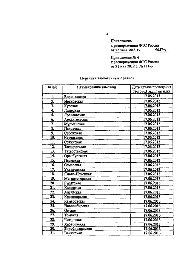 РАСПОРЯЖЕНИЕ ФТС РФ от 17.06.2013 N 187-р