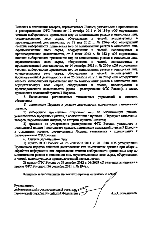 ПРИКАЗ ФТС РФ от 04.02.2013 N 202