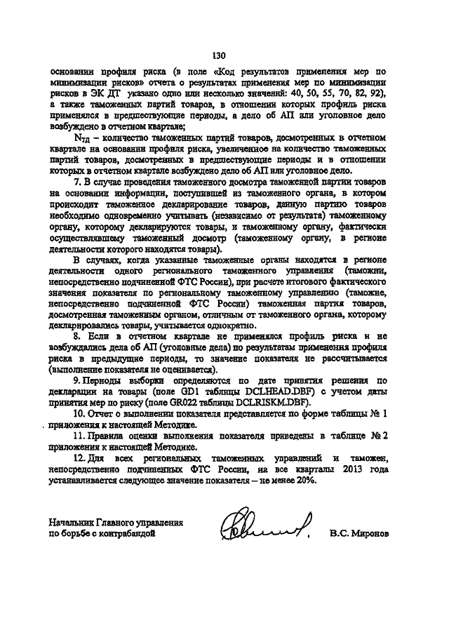 "О КОНТРОЛЬНЫХ ПОКАЗАТЕЛЯХ ЭФФЕКТИВНОСТИ ДЕЯТЕЛЬНОСТИ РЕГИОНАЛЬНЫХ ТАМОЖЕННЫХ УПРАВЛЕНИЙ И ТАМОЖЕН, НЕПОСРЕДСТВЕННО ПОДЧИНЕННЫХ ФТС РОССИИ, НА 2013 ГОД"