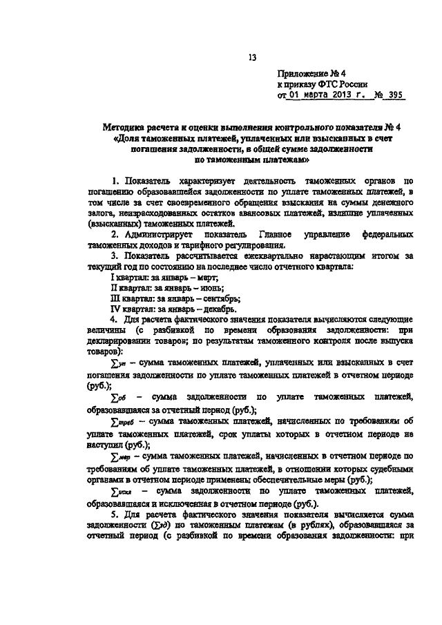 ПРИКАЗ ФТС РФ от 01.03.2013 N 395
