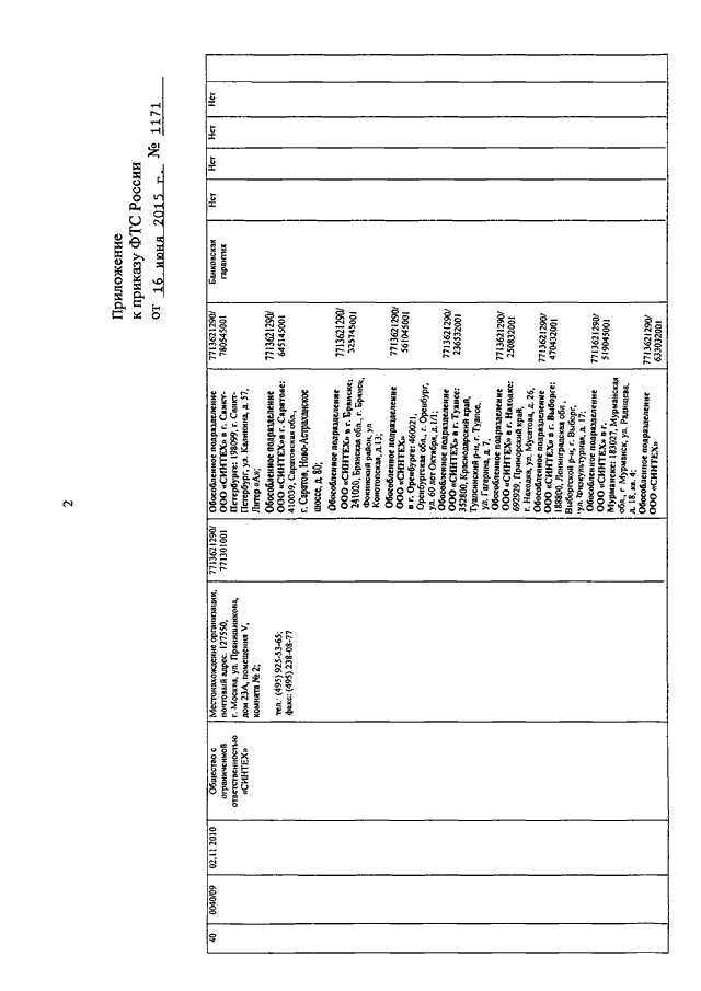ПРИКАЗ ФТС РФ от 16.06.2015 N 1171