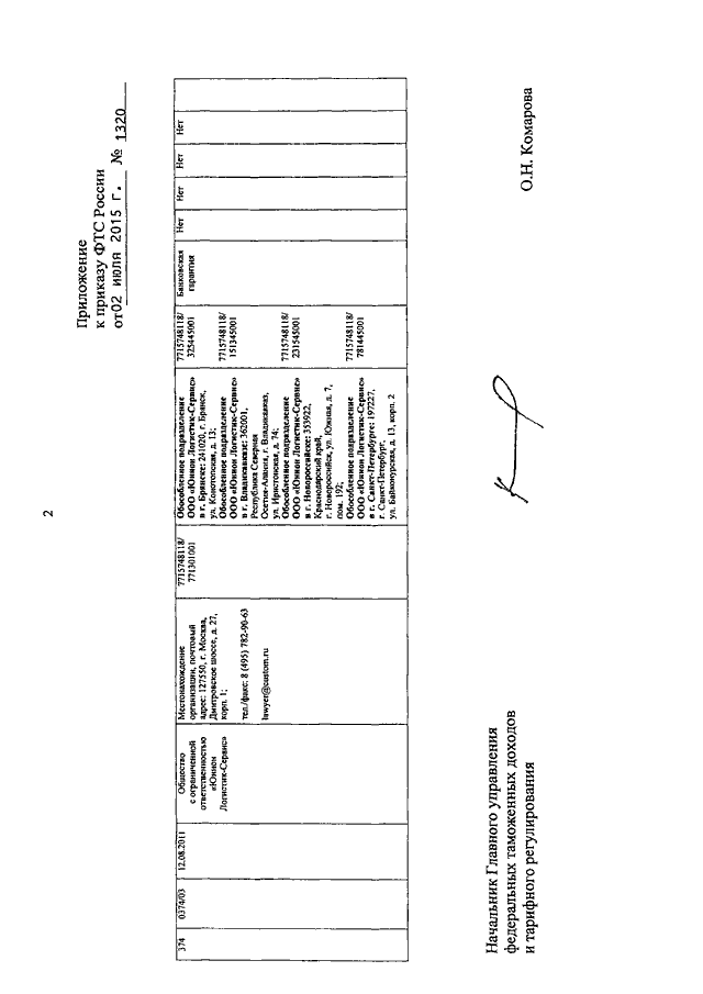 ПРИКАЗ ФТС РФ от 02.07.2015 N 1320