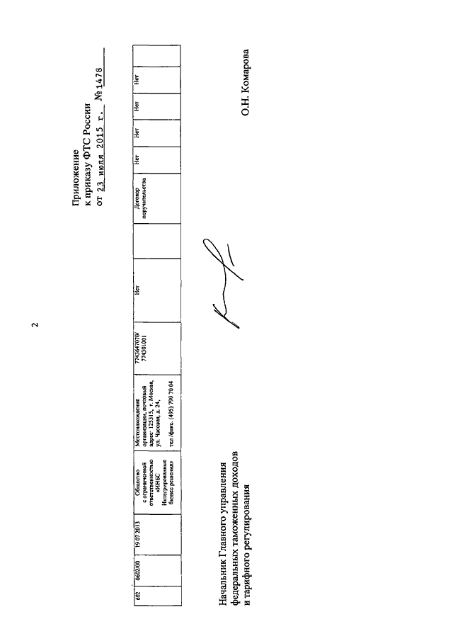 ПРИКАЗ ФТС РФ от 23.07.2015 N 1478