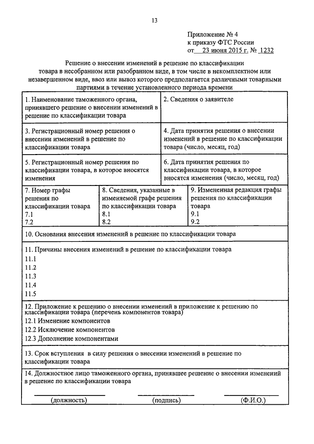 ПРИКАЗ ФТС РФ от 23.06.2015 N 1232
