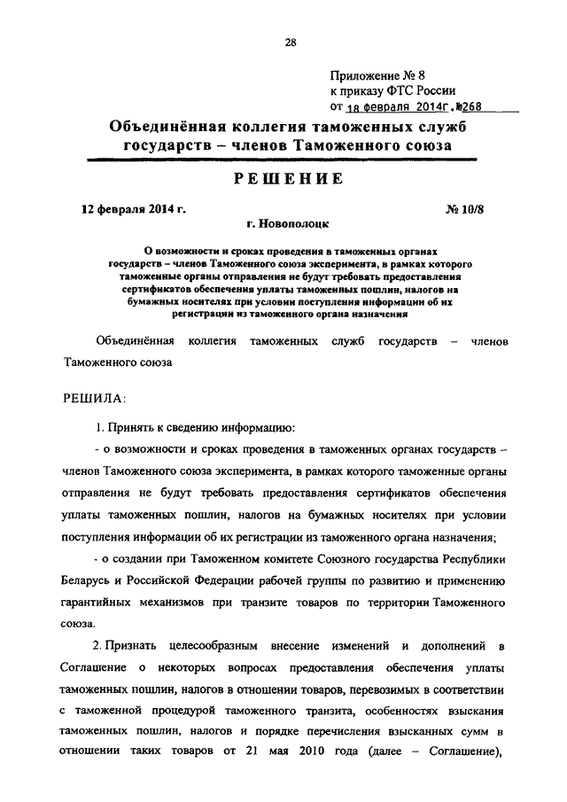 ПРИКАЗ ФТС РФ от 18.02.2014 N 268