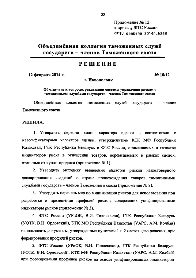 ПРИКАЗ ФТС РФ от 18.02.2014 N 268