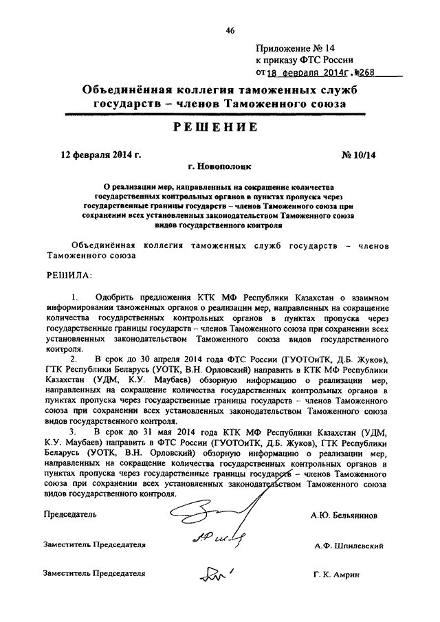 ПРИКАЗ ФТС РФ от 18.02.2014 N 268