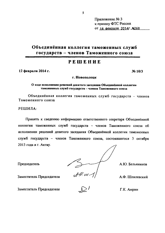 ПРИКАЗ ФТС РФ от 18.02.2014 N 268