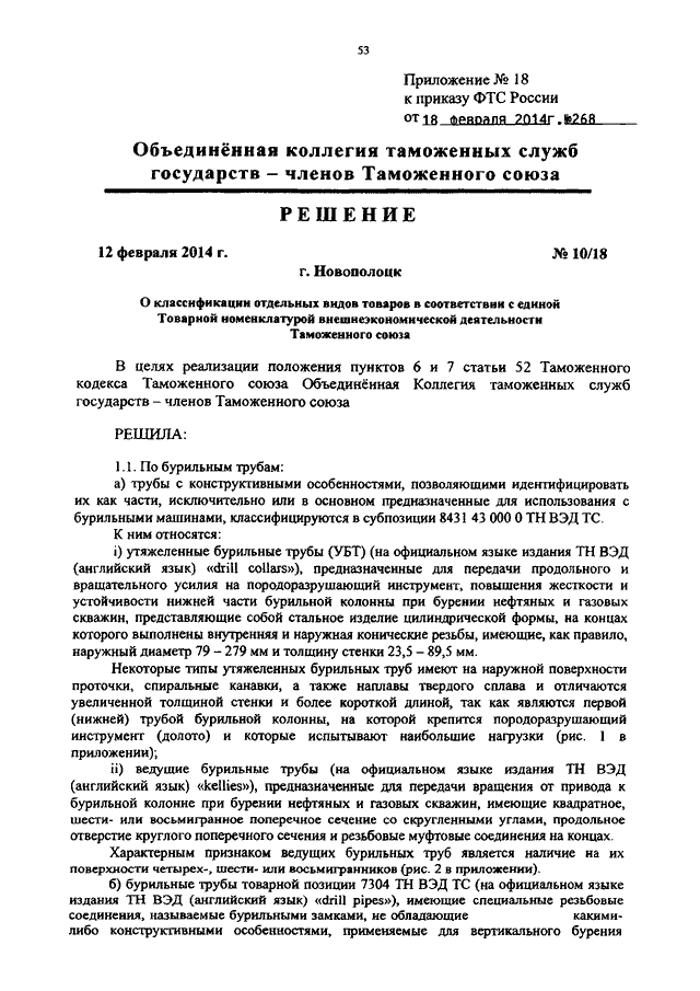 ПРИКАЗ ФТС РФ от 18.02.2014 N 268