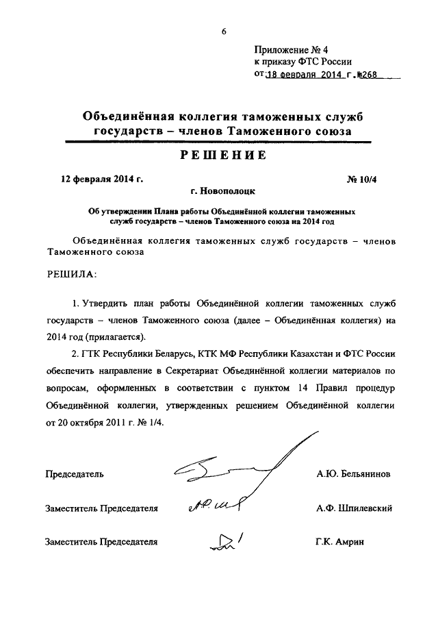 ПРИКАЗ ФТС РФ от 18.02.2014 N 268