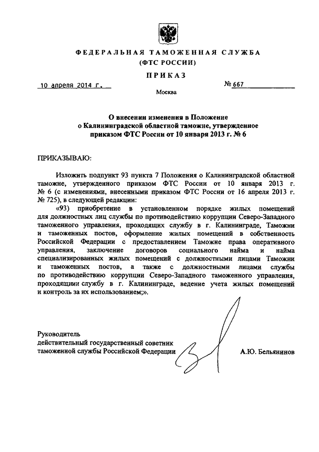 ПРИКАЗ ФТС РФ от 10.04.2014 N 667