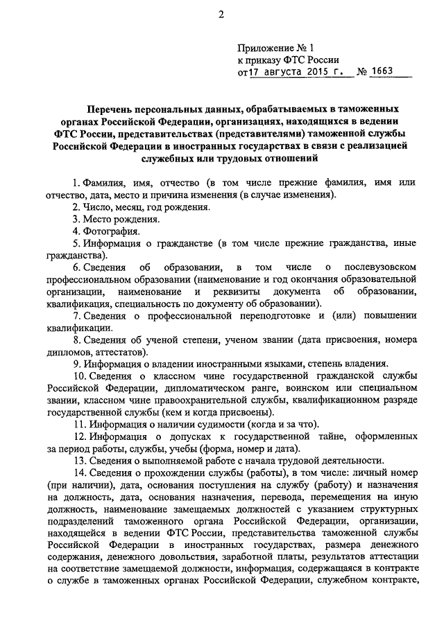 ПРИКАЗ ФТС РФ от 17.08.2015 N 1663