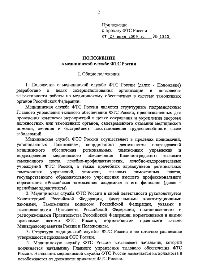 ПРИКАЗ ФТС РФ от 27.07.2009 N 1340
