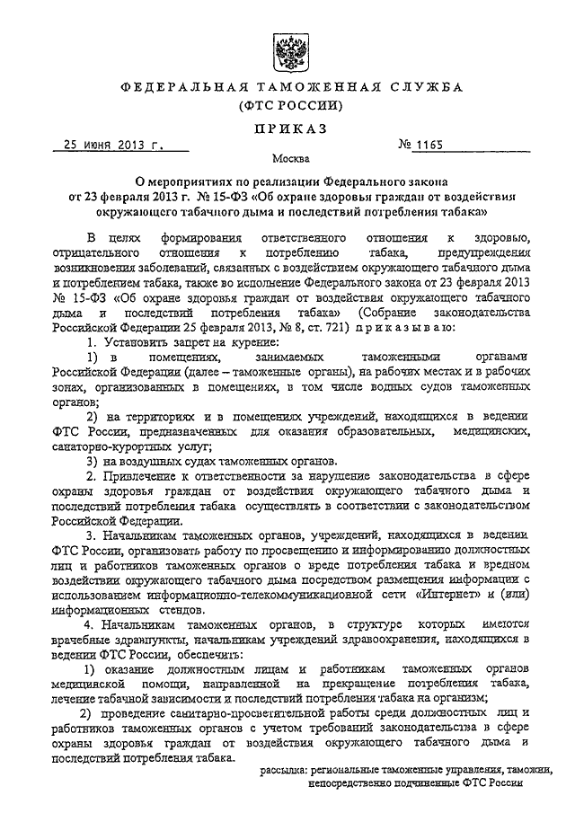 ПРИКАЗ ФТС РФ от 25.06.2013 N 1165