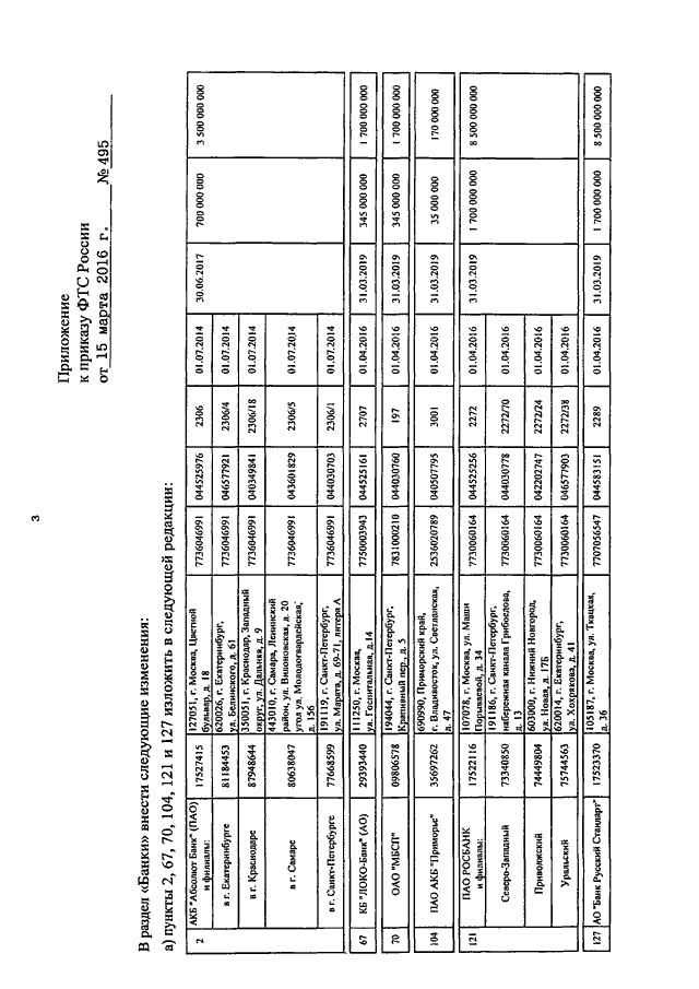 ПРИКАЗ ФТС РФ от 15.03.2016 N 495