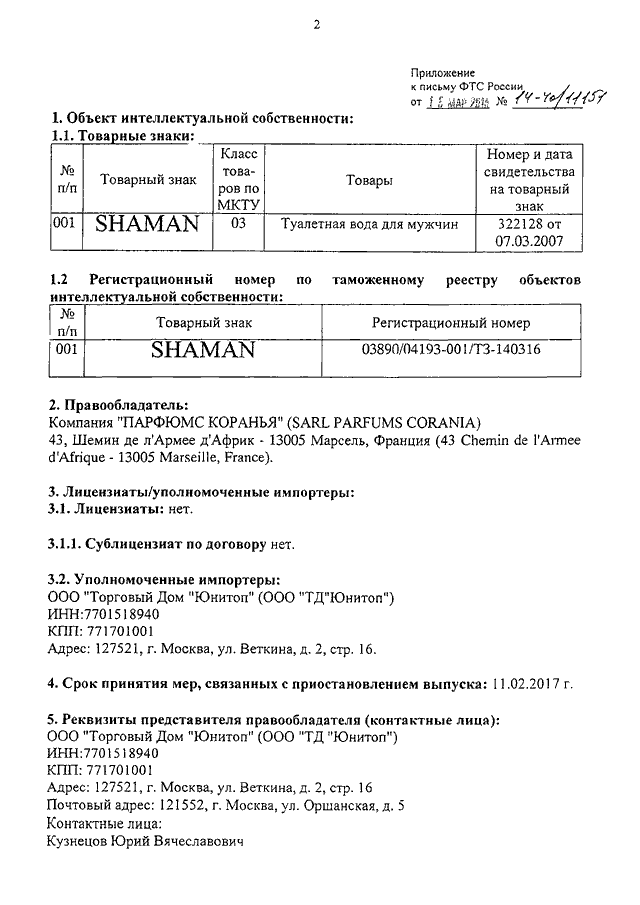 "О ТОВАРНОМ ЗНАКЕ "SHAMAN"
