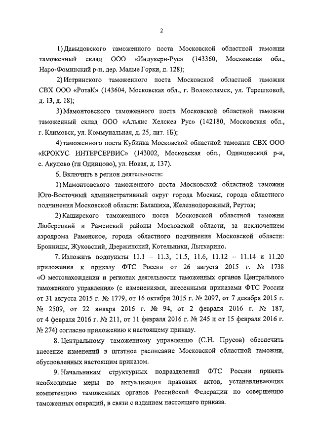 ПРИКАЗ ФТС РФ от 06.04.2016 N 679 "ОБ ОПРЕДЕЛЕНИИ МЕСТОНАХОЖДЕНИЯ И ПЕРЕИМЕНОВАНИИ ЛЫТКАРИНСКОГО