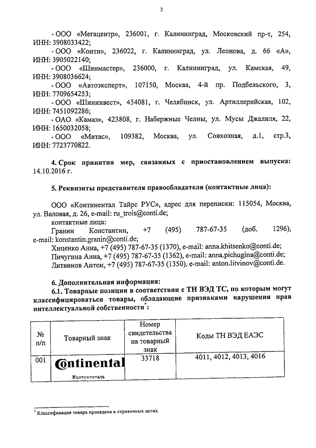 "О ТОВАРНОМ ЗНАКЕ КОМПАНИИ "CONTINENTAL REIFEN DEUTSCHLAND GMBH"
