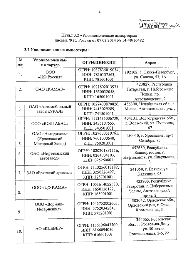 ПИСЬМО ФТС РФ от 12.04.2016 N 14-40/17098
