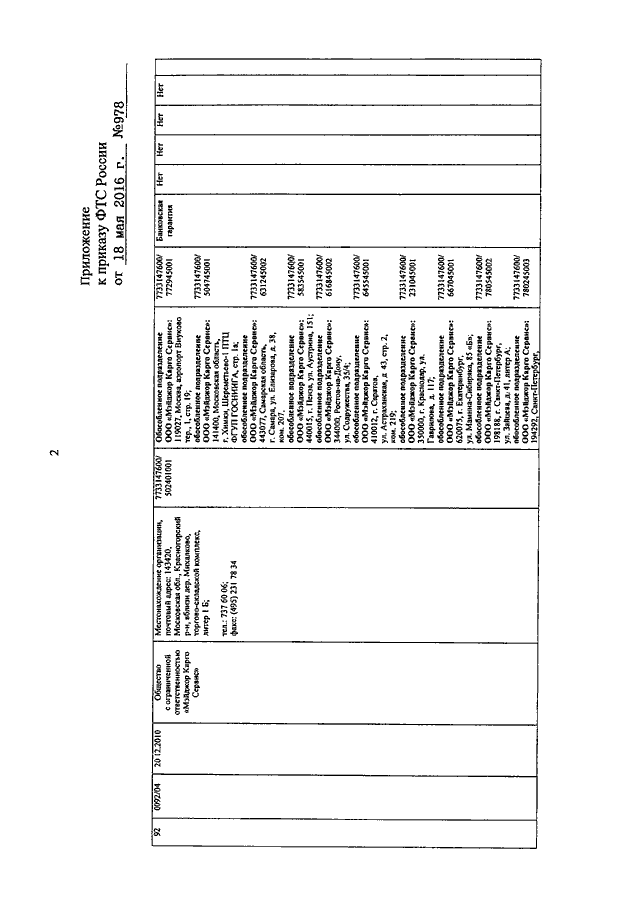 ПРИКАЗ ФТС РФ от 18.05.2016 N 978