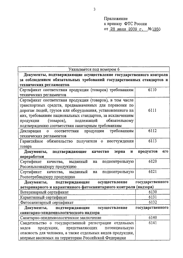 ПРИКАЗ ФТС РФ от 28.07.2009 N 1350