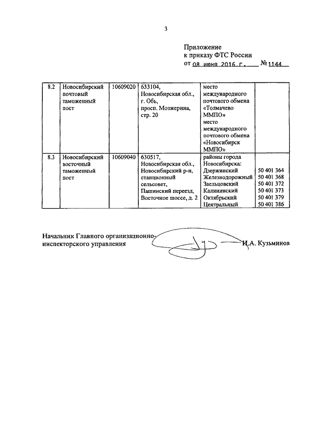 ПРИКАЗ ФТС РФ от 08.06.2016 N 1144