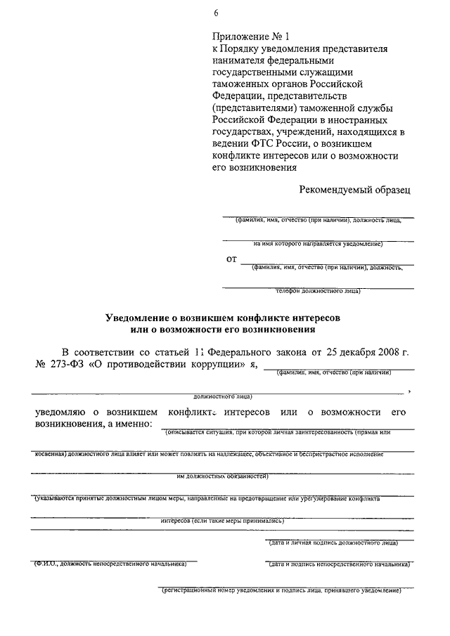 "ОБ УТВЕРЖДЕНИИ ПОРЯДКА УВЕДОМЛЕНИЯ ПРЕДСТАВИТЕЛЯ НАНИМАТЕЛЯ ФЕДЕРАЛЬНЫМИ ГОСУДАРСТВЕННЫМИ СЛУЖАЩИМИ ТАМОЖЕННЫХ ОРГАНОВ РОССИЙСКОЙ ФЕДЕРАЦИИ, ПРЕДСТАВИТЕЛЬСТВ (ПРЕДСТАВИТЕЛЯМИ) ТАМОЖЕННОЙ СЛУЖБЫ РОССИЙСКОЙ ФЕДЕРАЦИИ В ИНОСТРАННЫХ ГОСУДАРСТВАХ, УЧРЕЖДЕНИЙ, НАХОДЯЩИХСЯ В ВЕДЕНИИ ФТС РОССИИ, О ВОЗНИКШЕМ КОНФЛИКТЕ ИНТЕРЕСОВ ИЛИ О ВОЗМОЖНОСТИ ЕГО ВОЗНИКНОВЕНИЯ"
