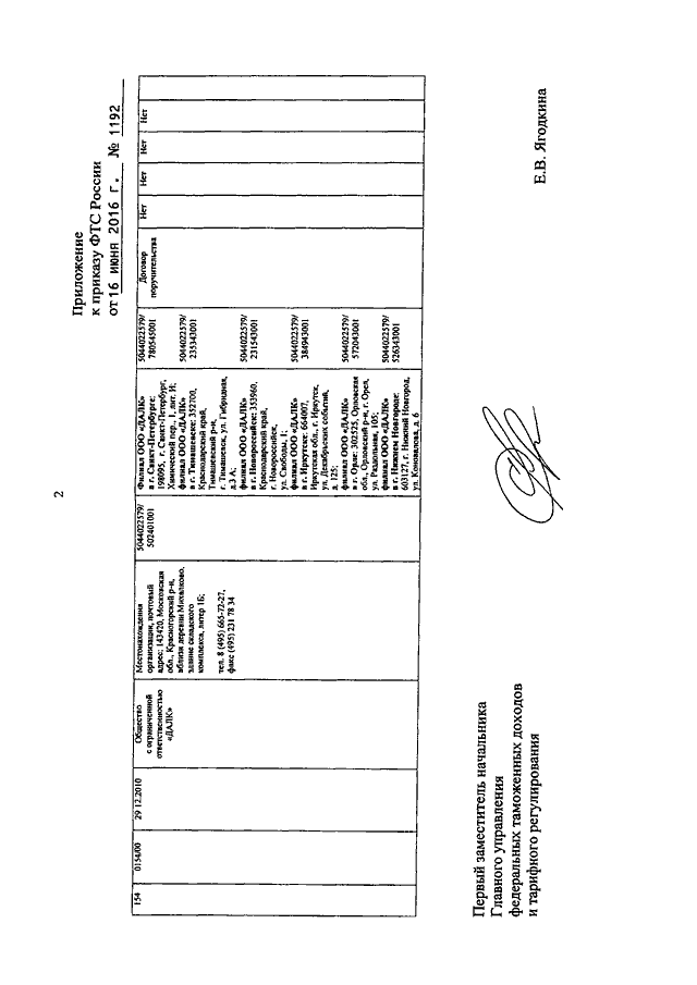 ПРИКАЗ ФТС РФ от 16.06.2016 N 1192