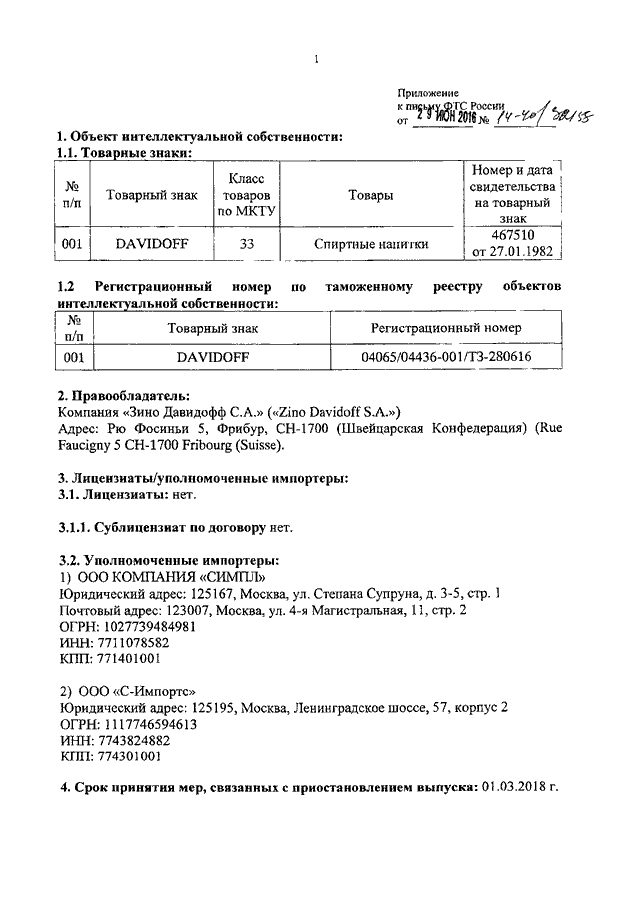 "О ТОВАРНОМ ЗНАКЕ "DAVIDOFF"