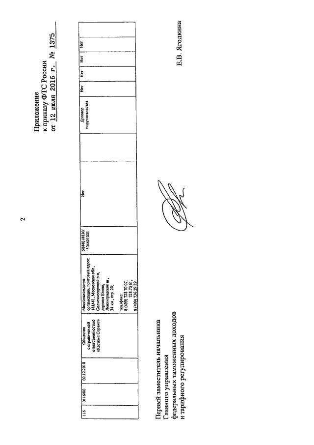 ПРИКАЗ ФТС РФ от 12.07.2016 N 1375