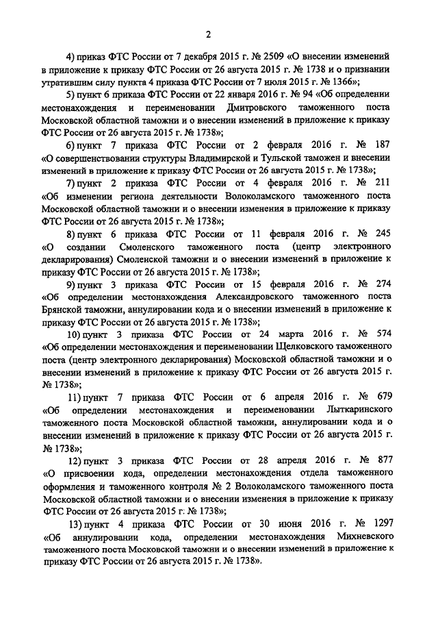 ПРИКАЗ ФТС РФ от 26.07.2016 N 1464