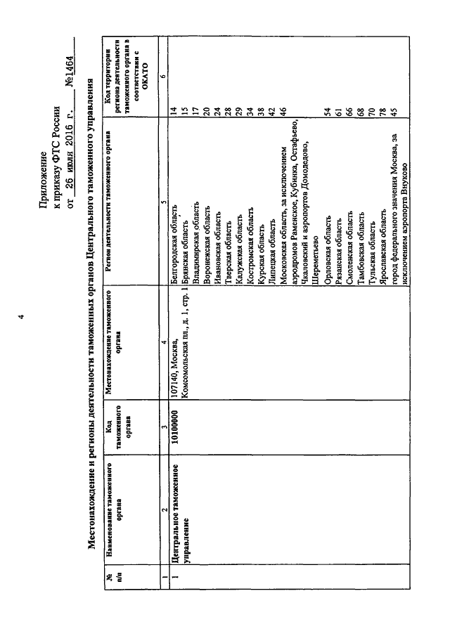 ПРИКАЗ ФТС РФ от 26.07.2016 N 1464