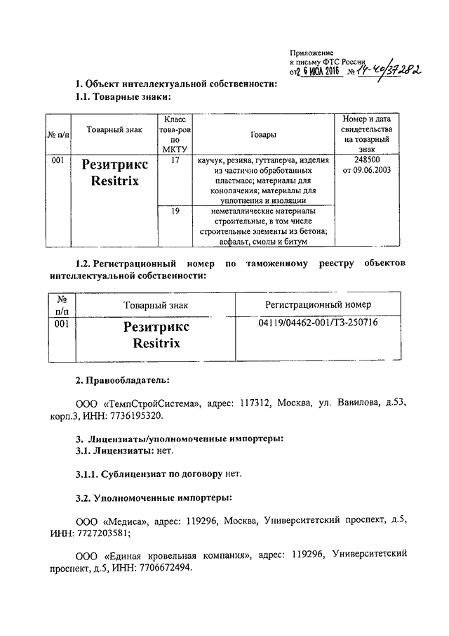 ПИСЬМО ФТС РФ от 26.07.2016 N 14-40/37282