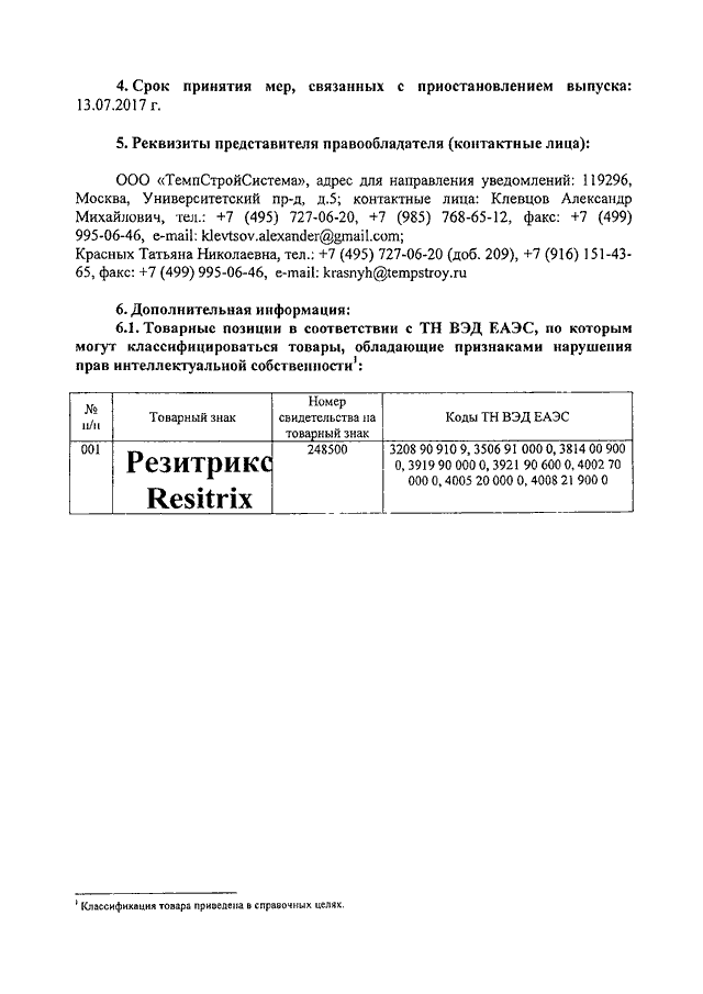 "О ТОВАРНОМ ЗНАКЕ ООО "ТЕМПСТРОЙСИСТЕМА"