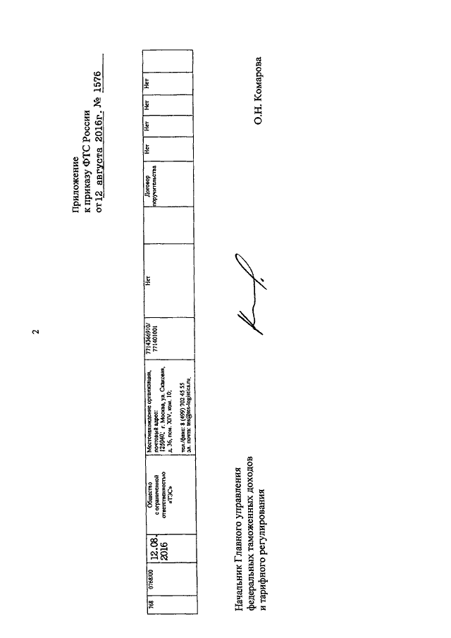 ПРИКАЗ ФТС РФ от 12.08.2016 N 1576