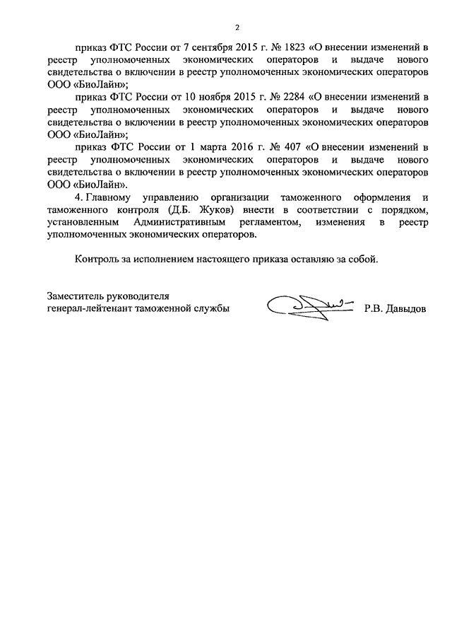 "ОБ ИСКЛЮЧЕНИИ ИЗ РЕЕСТРА УПОЛНОМОЧЕННЫХ ЭКОНОМИЧЕСКИХ ОПЕРАТОРОВ ООО "БИОЛАЙН"