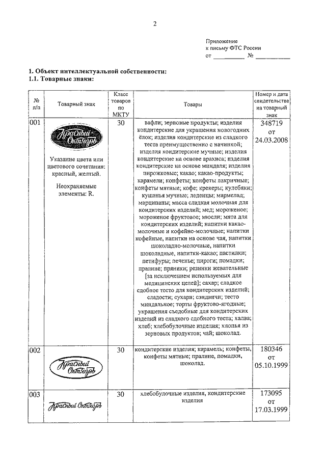 "О ТОВАРНЫХ ЗНАКАХ ОАО "МОСКОВСКАЯ КОНДИТЕРСКАЯ ФАБРИКА "КРАСНЫЙ ОКТЯБРЬ"