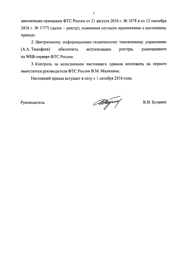 ПРИКАЗ ФТС РФ от 21.09.2016 N 1836