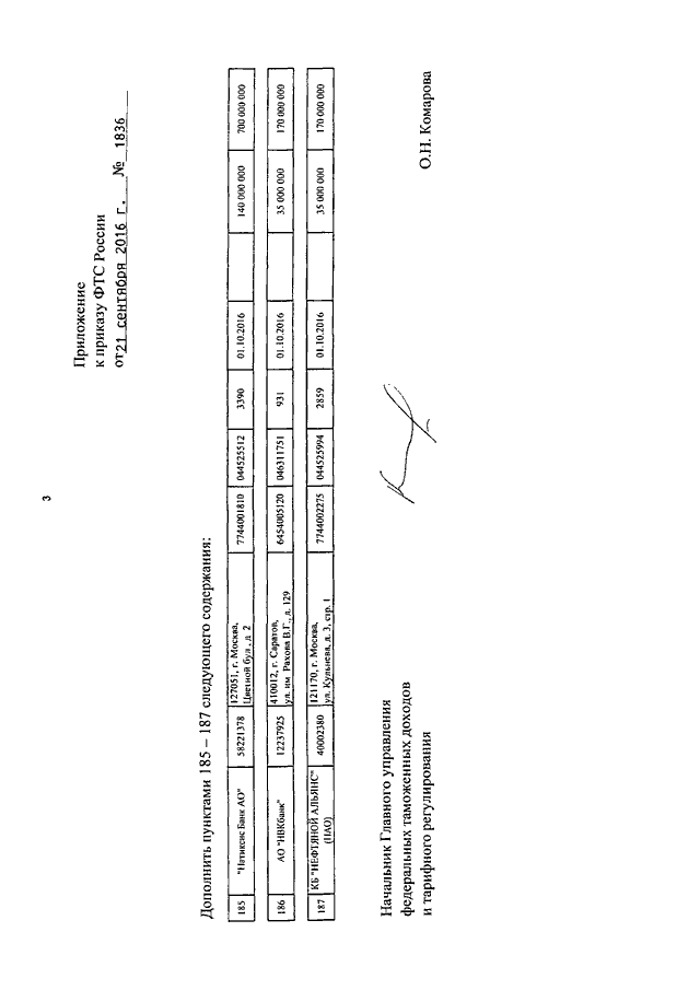 ПРИКАЗ ФТС РФ от 21.09.2016 N 1836